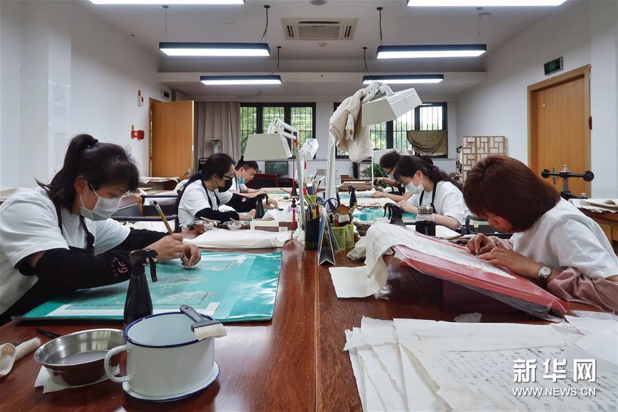 天一閣藏品修復(fù)部目前有修復(fù)師14人,每年約修復(fù)古籍14000余頁。據(jù)介紹,修復(fù)一冊古籍通常需要1至2個月,有的甚至需要1年以上。 新華社記者 鄭夢雨 攝