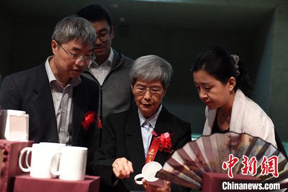2018年8月,樊錦詩(中)在莫高窟數(shù)字陳列中心參觀文創(chuàng)產(chǎn)品。(資料圖) 楊艷敏 攝