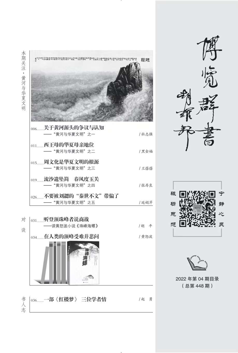“黃河與華夏文明”系列文章(共9篇),由《博覽群書》編輯部邀約西北師范大學(xué)文學(xué)院馬世年、杜志強(qiáng)等著名專家策劃、組稿,作者有馬世年、杜志強(qiáng)、張景平、延娟芹、張存良、黑金福、劉陽杰、蘭蓓蓓等,分別刊發(fā)于《博覽群書》2022年3期、9期。系列文章著眼黃河文化,呼應(yīng)中央關(guān)于研究黃河文化的號召,探討華夏文明在黃河流域的發(fā)展、發(fā)生與傳承、創(chuàng)新;同時,欄目通過精準(zhǔn)立意、深入考證和生動表達(dá),卓有成效地推介和普及了黃河文化,深化了國人對黃河文化的認(rèn)識。已經(jīng)探討的相關(guān)論題有:歷史上關(guān)于黃河起源的爭議,黃河文化的內(nèi)涵,先周文化,秦早期文化,民族文化,西王母文化,絲路文化等。據(jù)《博覽群書》雜志介紹,鑒于這一主題的人文價值和巨大影響,編輯部將和學(xué)界更加密切配合,加強(qiáng)相關(guān)欄目,講好學(xué)術(shù)故事,推動黃河文化研究形成新局面和新氣象。