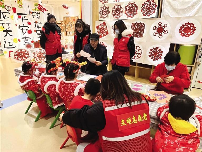 12月28日,西站街道西客站社區(qū)攜手華府寶貝幼兒園、蘭州市德鄰社會工作服務(wù)中心開展了“當非遺遇上新年”慶元旦迎新年主題活動。社區(qū)和幼兒園特別設(shè)立新年館、騰龍館、京劇館、剪紙館、書畫館以及扎染館六個場館,讓非遺與元旦相結(jié)合,體驗和傳承相呼應(yīng)。