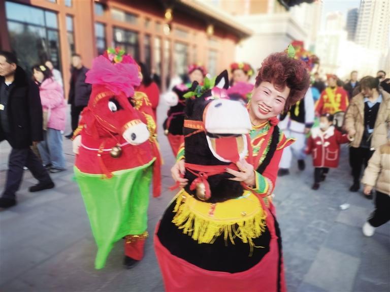 從臘月二十三開始,蘭寶平幾乎每天都要參加表演,與記者見面時(shí),已是當(dāng)天她在蘭州老街的第四場(chǎng)表演。一天下來,她從東扭到西,出老街進(jìn)廣場(chǎng),每到一處都是人們歡樂的源泉和目光的焦點(diǎn)。