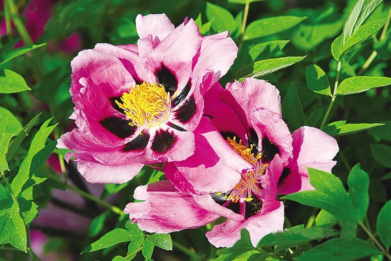 臨夏牡丹又稱河州牡丹、河州紫斑牡丹,因其花瓣基部有明顯的紫色斑點(diǎn)而得名,有著1400多年的栽培歷史。相傳,文成公主進(jìn)藏和親路過(guò)臨夏住在炳靈寺時(shí)留下數(shù)株牡丹,經(jīng)過(guò)千百年繁衍發(fā)展,也留下了家家戶戶種牡丹的習(xí)俗。據(jù)考證,在當(dāng)?shù)毓┓钗某晒鞯乃略豪镉写罅磕档ぴ氐奶瓶▓D案,在出土的金代墓葬中有牡丹磚雕的紋飾,而明嘉靖版《河州志》中有百姓家家戶戶種牡丹的記載。