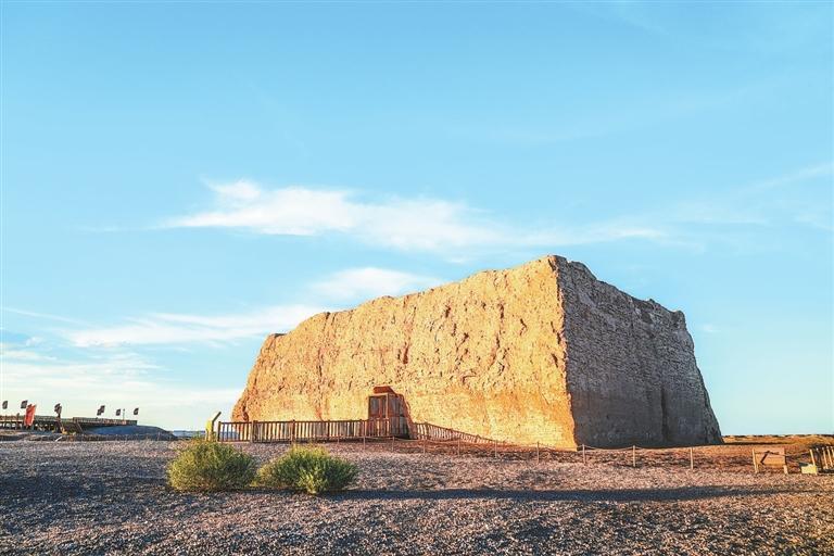 歲月洗禮,如今的陽關(guān)已沒了蹤跡,只剩下一片叫作“古董灘”的洼地,和遠(yuǎn)處的陽關(guān)烽燧。戈壁深處的玉門關(guān),被稱為“小方盤城”,走進(jìn)城中仍能感受到雄關(guān)莊嚴(yán)。往西5公里處,還能見到一段漢長城頑強挺立。