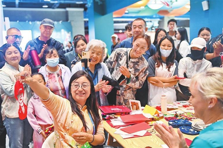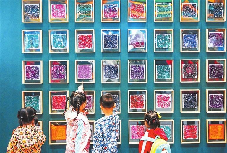 獨具特色的剪紙作品吸引了孩子們的目光。