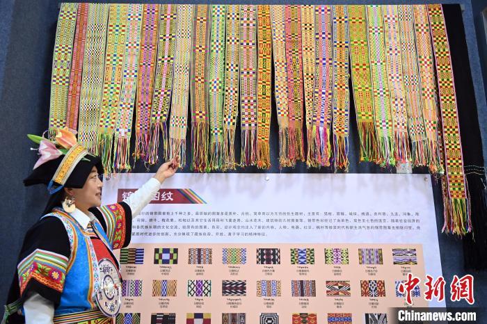 9月26日,甘肅省甘南藏族自治州舟曲縣,當(dāng)?shù)夭刈鍕D女展示紡織好的錦帶。錦帶是舟曲藏族婦女用以束腰、扎靴、攏發(fā)乃至點綴服飾的花帶子,艷麗多彩、圖案優(yōu)美。每逢吉慶節(jié)日,藏族婦女穿戴的華麗盛裝就需要少則五、六條,多則十幾條寬窄長短相宜的錦帶來裝飾。據(jù)介紹,藏族織錦帶技藝歷史悠久,一千多年以前,古羌族和吐蕃已有了較發(fā)達(dá)的手工編織技術(shù),在艱難的生活條件下對服飾等生活用品除實用功能之外,已經(jīng)有了強(qiáng)烈的審美追求,是研究舟曲羌藏文化的“活化石”。中新社記者 九美旦增 攝