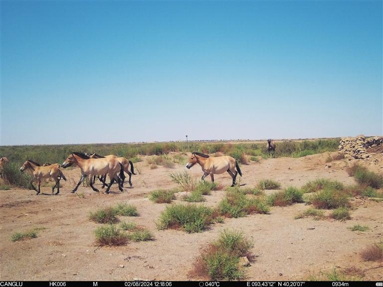 近日,甘肅敦煌西湖國家級自然保護區(qū)工作人員在保護區(qū)監(jiān)測數據中發(fā)現了令人驚嘆的一幕:普氏野馬與野駱駝同框。