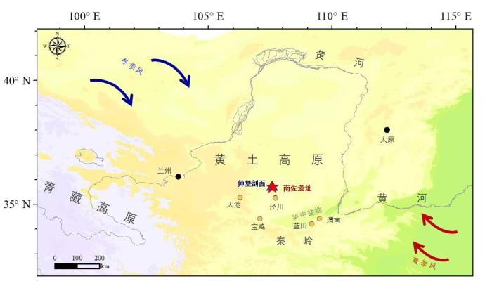 南佐遺址和帥堡剖面地理位置及所受季風(fēng)影響示意圖。韓建業(yè) 供圖