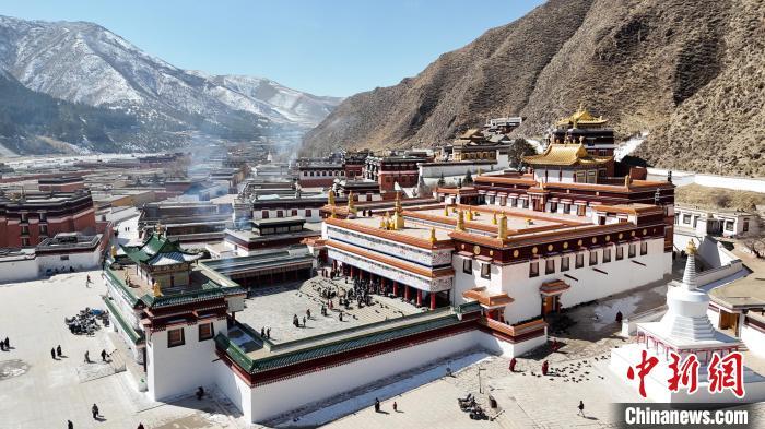 2月28日,航拍“世界藏學(xué)府”拉卜楞寺。(無人機(jī)照片)九美旦增 攝