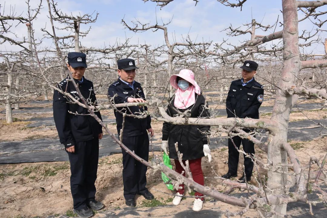 在這片希望的田野上,一抹抹藏藍色的身影穿梭于果園中,格外引人注目。“老武,今年果樹長勢不錯??!不過最近天氣干燥,可得注意防火,別在地頭抽煙了!”民警張?zhí)锝芤贿呇策?,一邊笑著提醒正在修剪果樹的果農(nóng)武大叔。“放心吧,張警官,你們天天來巡邏,我們心里踏實多了!”武大叔擦了擦額頭的汗,連連點頭道。