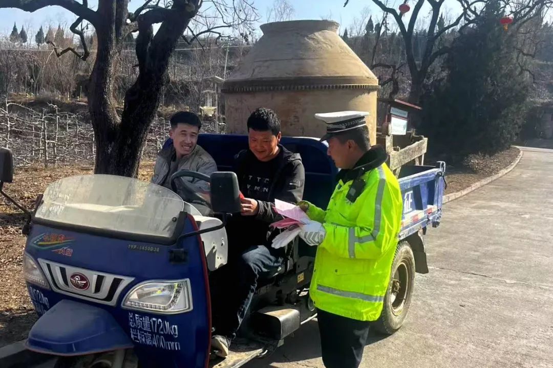 針對春耕期間農(nóng)用車違法載人、超載運輸、人貨混裝等安全隱患,花牛派出所聯(lián)合交警中隊組建“春耕宣傳小分隊”,深入春耕生產(chǎn)一線,通過發(fā)放交通安全宣傳單等方式,結(jié)合典型案例,用“拉家常”的語言向群眾送去“交通安全”的種子,全力守護果農(nóng)們的春耕生產(chǎn)路。