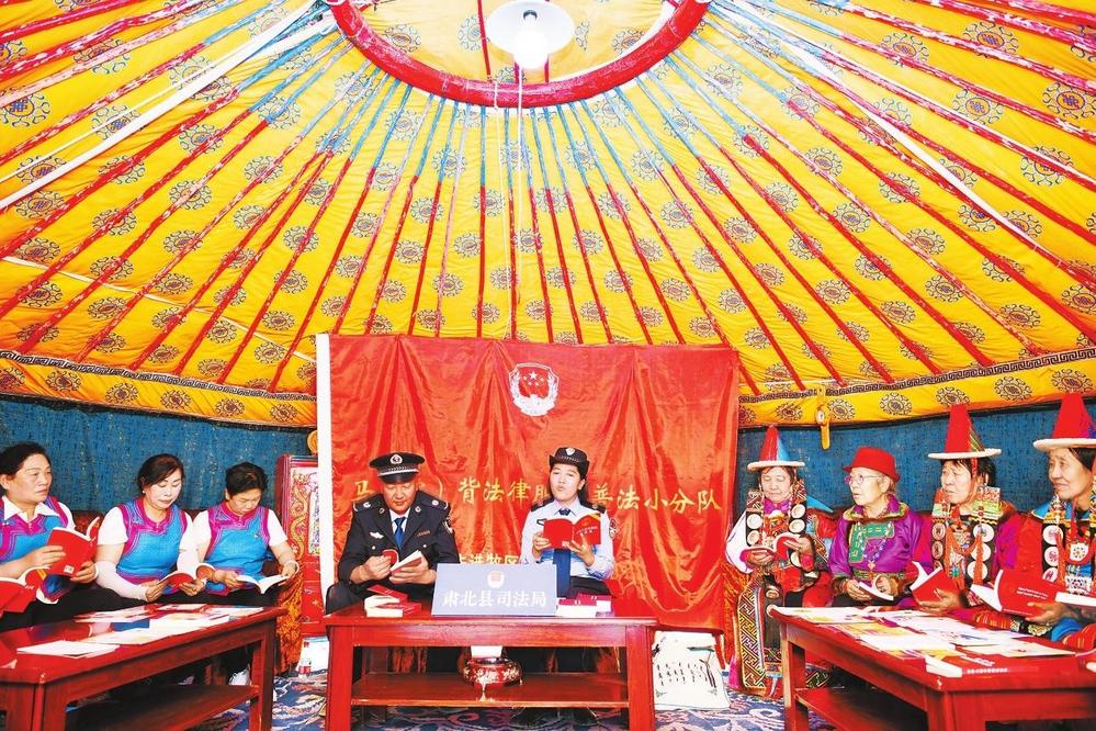 “西出陽關(guān)無故人,而今法治伴我行。”在肅北蒙古族自治縣,黨河峽谷的風裹挾著悠揚的馬頭琴聲,將“法治烏蘭牧騎”的歌聲傳向遠方;