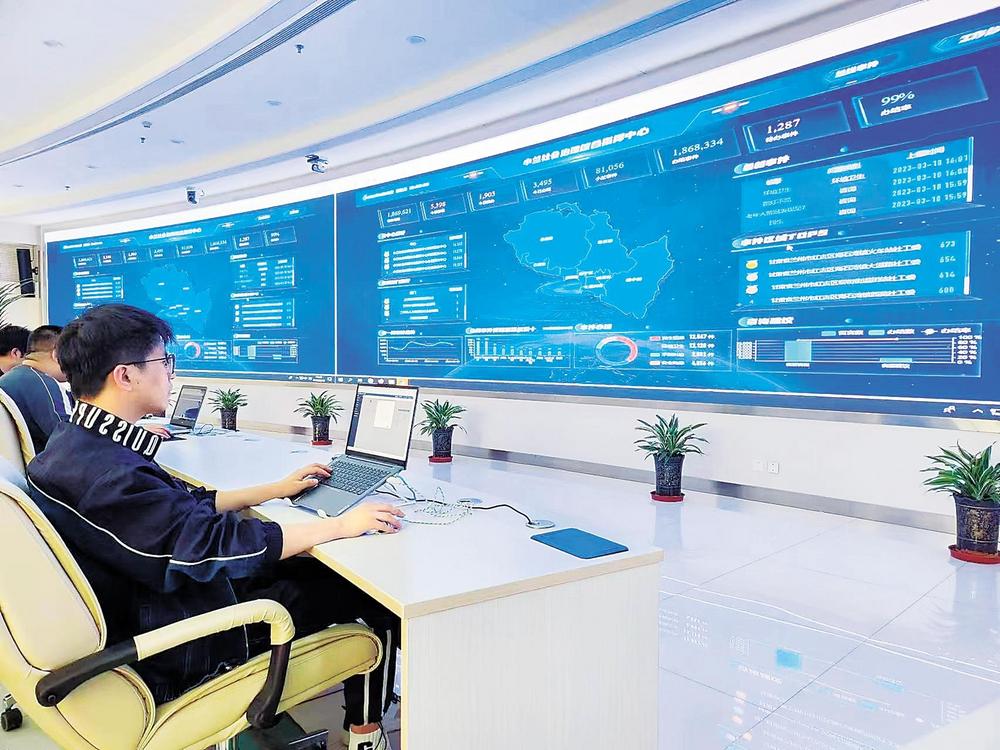 蘭州市社會治安綜合治理中心工作人員實(shí)時(shí)關(guān)注“民情地圖·小蘭善治”平臺。