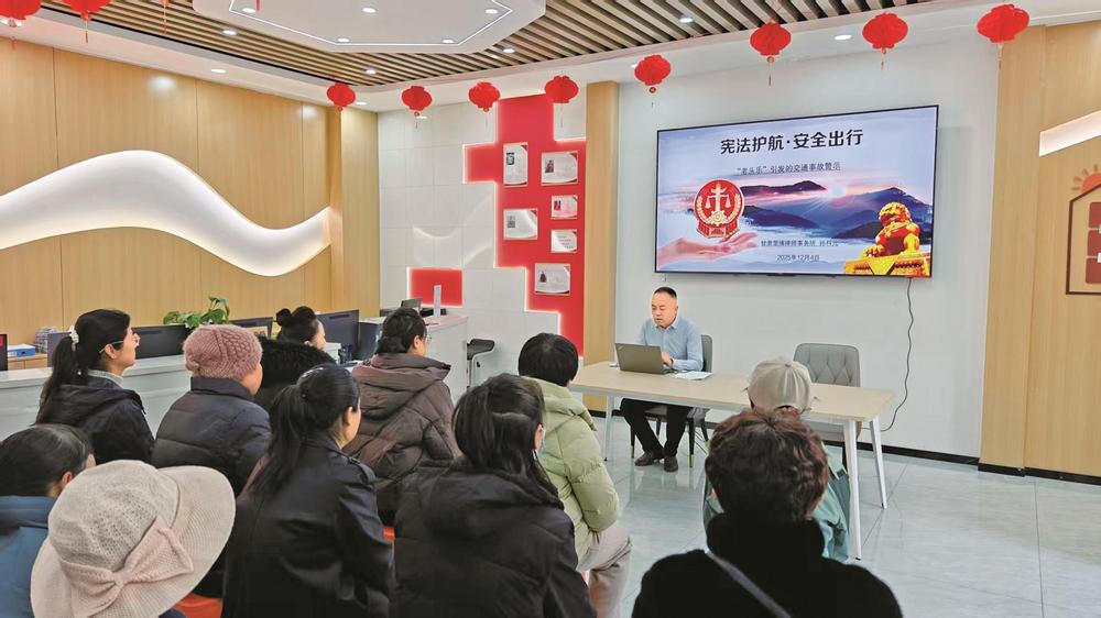律師在社區(qū)開展“憲法護航·安全出行”主題普法講座。