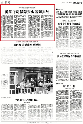 今年2月,抓住資金保障這個鞏固拓展和有效銜接的關(guān)鍵環(huán)節(jié),甘肅省紀(jì)委監(jiān)委派出調(diào)研組赴省財(cái)政廳、省扶貧辦、省農(nóng)業(yè)農(nóng)村廳等部門,就做好鞏固拓展和鄉(xiāng)村振興資金監(jiān)督開展調(diào)研,并深入天水市甘谷縣“解剖麻雀”。目前,正在研究制定相關(guān)監(jiān)督工作方案,從財(cái)政投入政策落實(shí)、資金全流程運(yùn)行、各級責(zé)任落實(shí)3個方面梳理監(jiān)督任務(wù),加強(qiáng)對用于支持鞏固拓展和鄉(xiāng)村振興“7類資金”的監(jiān)督,重點(diǎn)防范和解決潛在的風(fēng)險(xiǎn)隱患,嚴(yán)肅查處向資金“伸黑手”的腐敗問題,確保資金投入有力有序,使用安全規(guī)范。