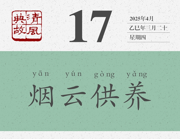 煙云,即山水風(fēng)景。供養(yǎng),即陶冶滋養(yǎng)。“畫(huà)中煙云供養(yǎng)”的原意是,黃公望和米友仁之所以貌如童顏,神明不衰,是因?yàn)槠渖剿?huà)中煙雨濛濛、薄霧繚繞的意境滋養(yǎng)了他們。后世即以“煙云供養(yǎng)”為典,喻美好的自然環(huán)境,可以舒暢人的心情,撫慰人的精神。這就是為什么人們把自然環(huán)境好的地方稱(chēng)作“養(yǎng)生之地”的原因。錢(qián)大昕《梁山舟前輩八十》詩(shī):“占得西湖第一峰,煙云供養(yǎng)幾千重。門(mén)懸曼碩山舟字,人識(shí)坡公笠屐容。”
