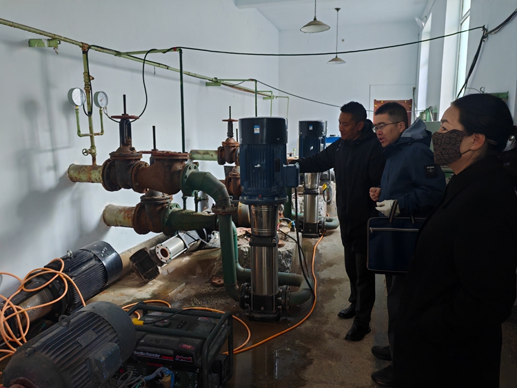 巡察組工作人員和縣供排水公司負責人到東河灘泵廠實地查看制水工藝、管網(wǎng)維護、安全生產情況。