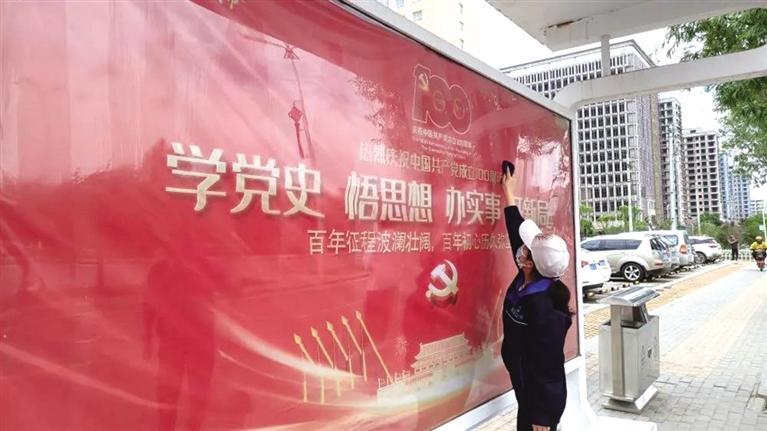 新區(qū)公交公司充分利用公交車這一載體,結(jié)合黨史學習教育和慶祝建黨100周年公益宣傳標語,精心設計了宣傳畫,張貼在新區(qū)公交11路、12路、13路、14路、15路、16路等公交車車身醒目位置;在公交車車廂內(nèi)的燈箱、宣傳欄圖文并茂宣傳黨史故事,生動形象地展示黨的光輝歷程;并在公交車車尾屏和出租車頂燈滾動播放宣傳標語。同時,該公司在重要路段沿線公交站亭張貼了黨史學習宣傳海報,打造出以紅色為主題的宣傳走廊,通過一個個黨史流動宣傳站,讓黨史學習教育深入街巷,將黨史知識潛移默化傳遞給市民,引導廣大市民知史愛黨、知史愛國。