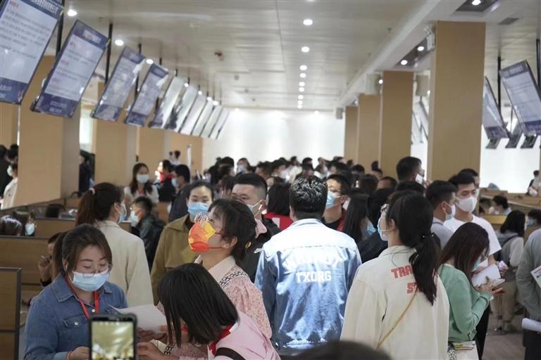 招聘會現(xiàn)場人潮涌動 蘭州日報社全媒體記者 陳夢圓 攝