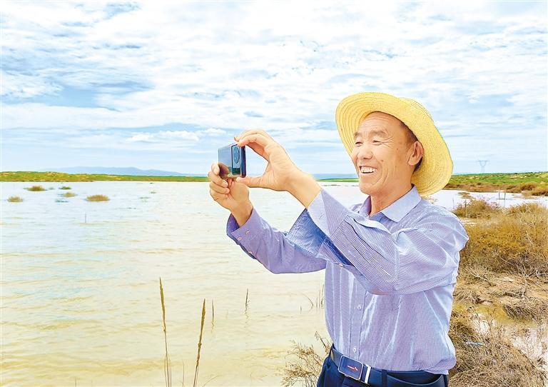 郭萬(wàn)剛格外珍惜這一灘湖水,他沿著水岸走了很久,還不時(shí)地用手機(jī)拍照,他認(rèn)為這是大自然對(duì)古浪持續(xù)開(kāi)展生態(tài)建設(shè)的回報(bào)。“我今年70歲了,這是我第一次在這片沙漠里見(jiàn)到湖泊,給它取名‘紅沙湖’,希望它像沙漠里的紅柳一樣永遠(yuǎn)充滿生機(jī),不要干涸。”郭萬(wàn)剛說(shuō)。