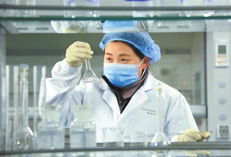 工人在成縣青島利和萃取隴南生物萃取車間里專注作業(yè)
