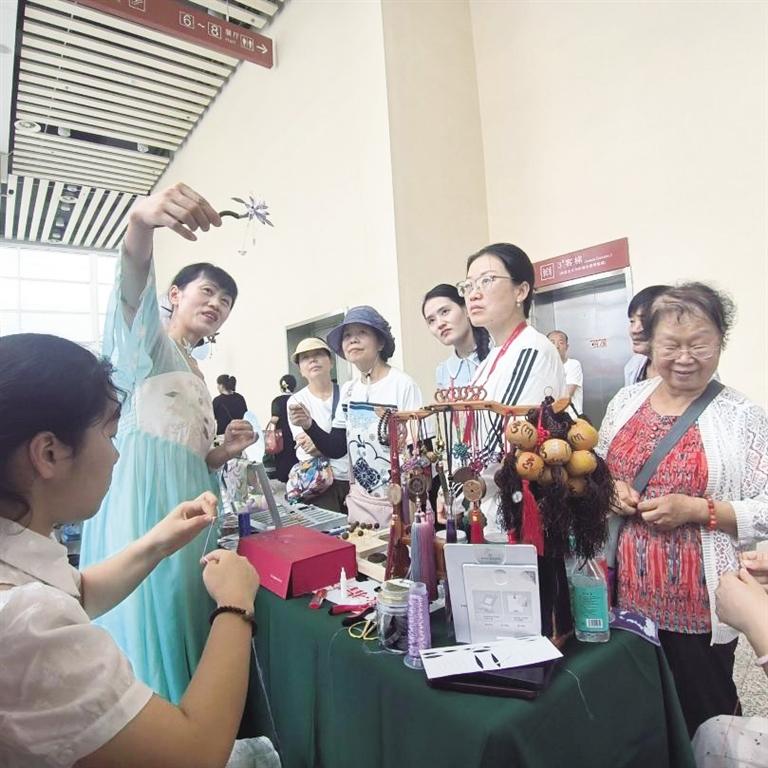 孫鳳茹告訴記者,這是自己帶領(lǐng)團(tuán)隊(duì)第一次參加蘭洽會,看到那么多人喜歡自己和團(tuán)隊(duì)成員們設(shè)計(jì)制作的作品,大家就特別開心。“有一對新婚夫婦喜歡上了我們的一款發(fā)簪,當(dāng)場就買下來。因?yàn)樗粌H是一件精美的頭飾,更是一款承載了滿滿祝福與美好寓意的愛情信物。”