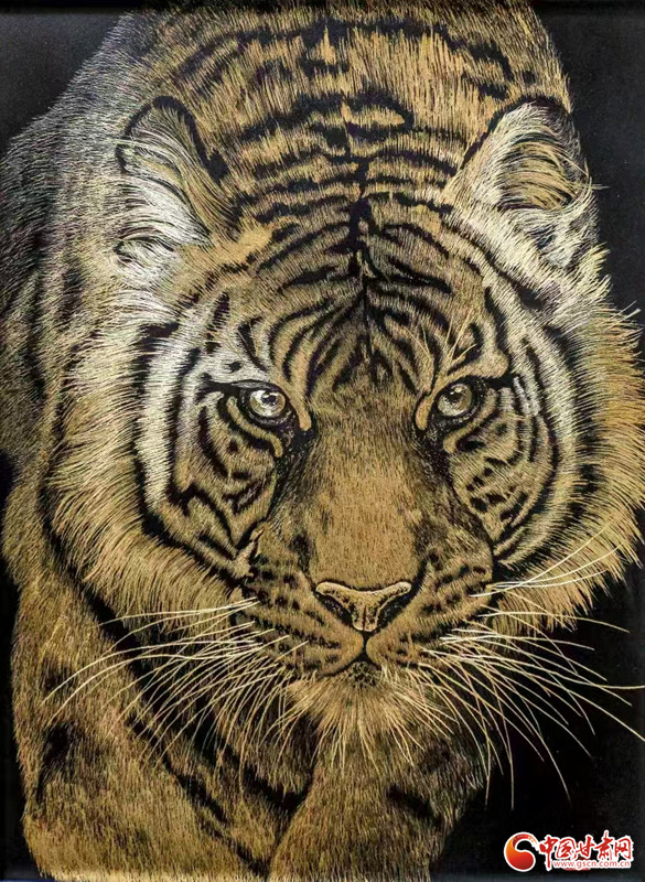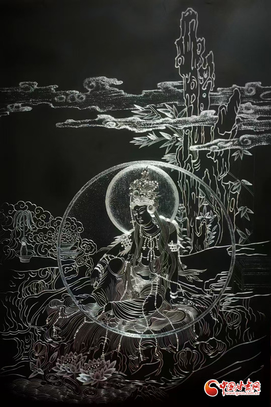 對張兆武來說,做鍥金畫從來不是“照貓畫虎”。他琢磨傳統(tǒng)書畫的筆墨、篆刻的力道,慢慢攢出了自己的一套刀法;創(chuàng)作時,心里裝的也全是敦煌——從莫高窟第112窟里“反彈琵琶”的靈動舞姿,到傳說中“九色神鹿”的溫潤模樣,都成了他刻刀下的主角。他刻出的飛天,飄帶像帶著風;刻出的菩薩,眉眼間透著莊重;金屬的光澤在畫面上流轉(zhuǎn),明明是靜態(tài)的畫,卻像在講一段活的敦煌故事。“不用多說什么,看過的人能懂這份美。”張兆武說的這份“懂”,恰恰打破了文化和語言的距離,讓東方的古老美學,和全世界的現(xiàn)代審美碰出了共鳴。