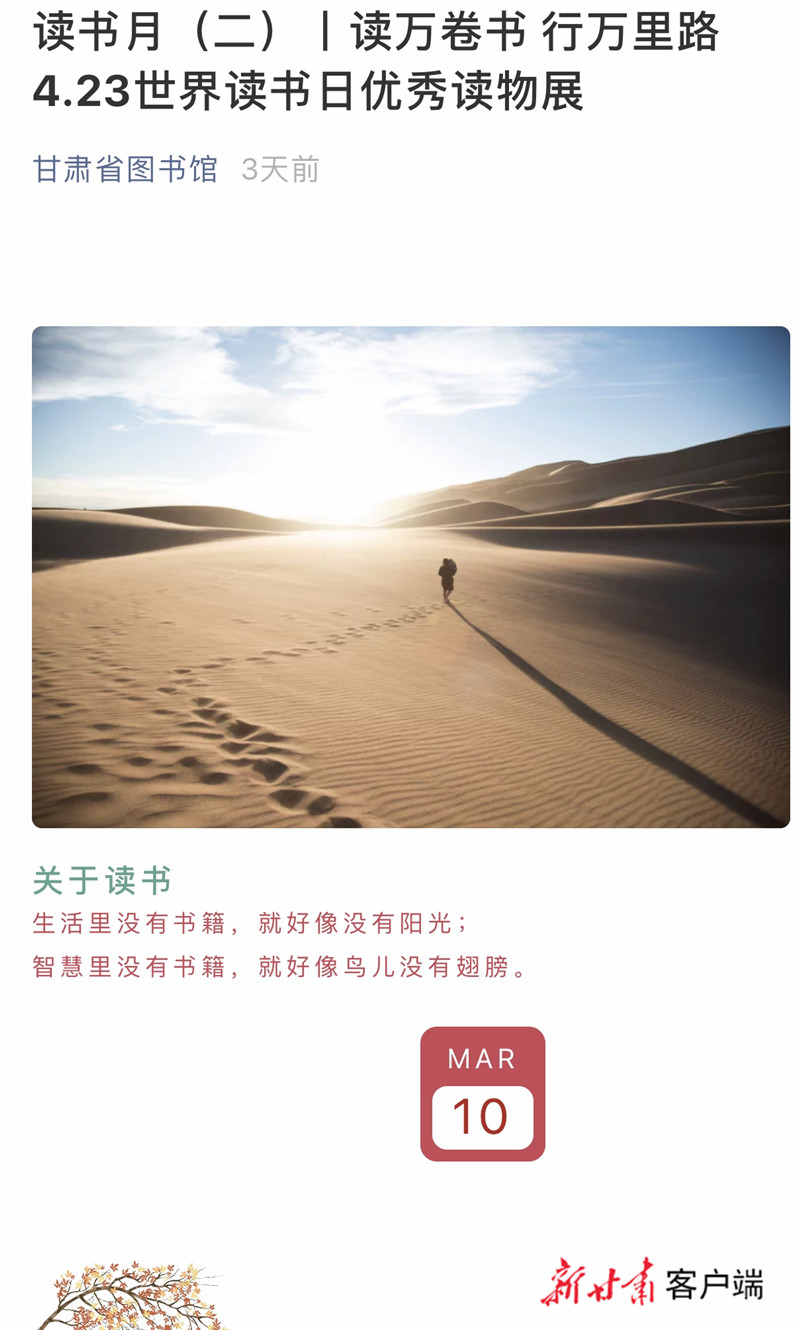 甘肅省圖書館推出線上讀書月系列活動,迎接“世界讀書日”。