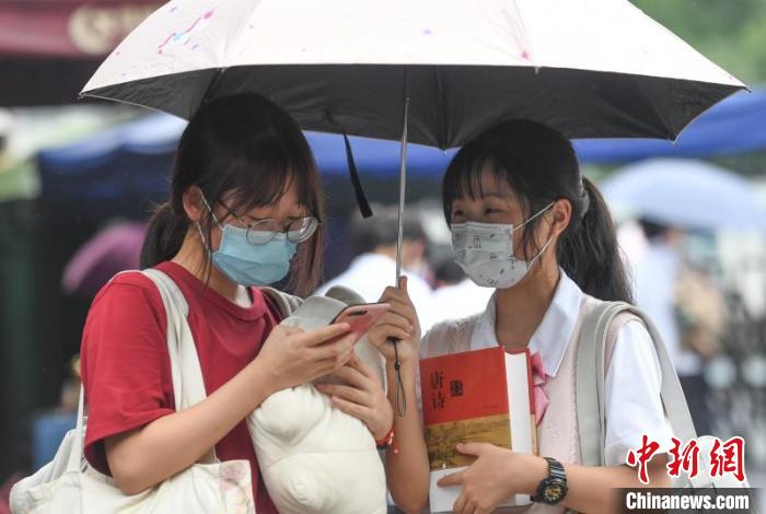 浙江高考結(jié)束首日,在杭州學(xué)軍中學(xué)門口,考生抱著復(fù)習(xí)資料準備回家。 王剛 攝
