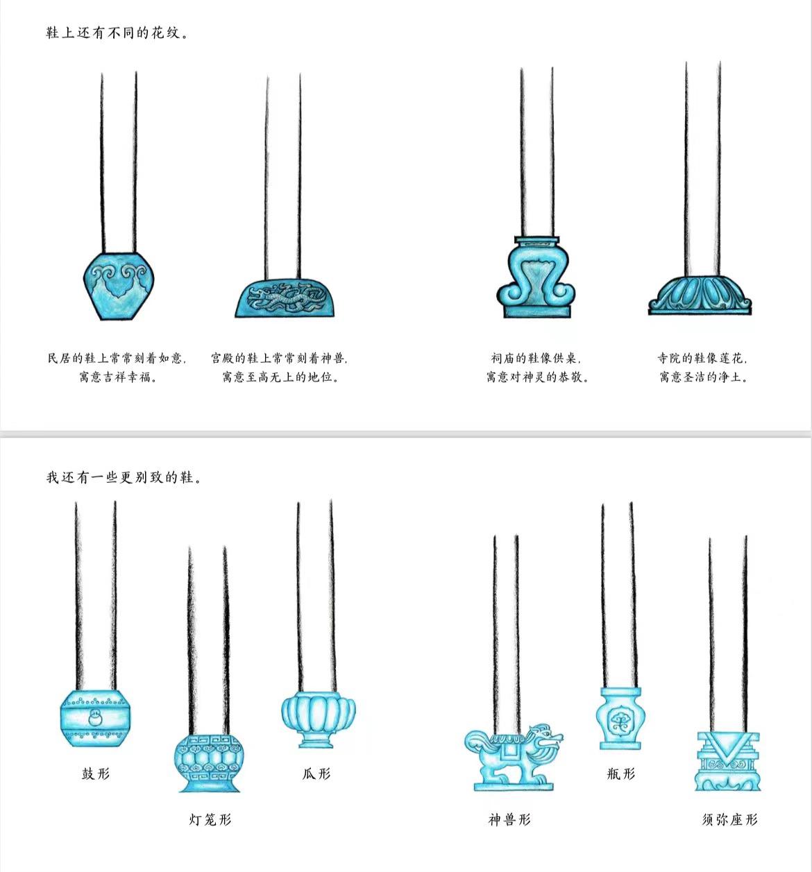 介紹柱礎(chǔ)時,講述中國房子也有很多漂亮的石頭鞋子: