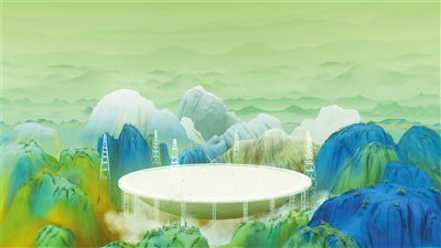 數(shù)字技術(shù)的賦能,進(jìn)一步打開青綠山水創(chuàng)作空間。在黨的二十大勝利召開之際,人民日報社新媒體中心在全網(wǎng)上線創(chuàng)意動畫視頻《新千里江山圖》,數(shù)字技術(shù)與中華優(yōu)秀傳統(tǒng)文化元素相結(jié)合,輔以青綠色彩,鋪展一幅新時代的“千里江山圖”,生動講述中國故事。還有一些創(chuàng)作者以“藝術(shù)+科技”思維,用數(shù)字藝術(shù)重新演繹青綠山水之美。比如藝術(shù)家靳軍的個人展覽“數(shù)境等觀”,便呈現(xiàn)了他近年來以數(shù)字藝術(shù)“轉(zhuǎn)譯”傳統(tǒng)圖像和意境的多組作品。光影流轉(zhuǎn)中,觀眾得以沉浸式體驗(yàn)青綠之美。