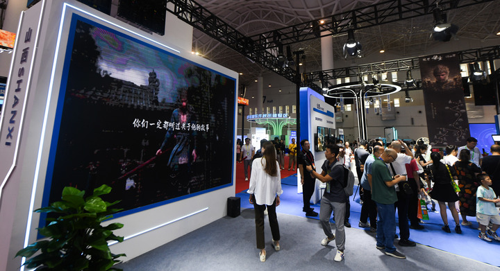 數(shù)博會(huì)上,國(guó)產(chǎn)游戲《黑神話:悟空》備受矚目。山西展團(tuán)以游戲中“悟空”路線為主題,重點(diǎn)展示了一批介紹山西古建筑、歷史文化遺產(chǎn)的出版物,“悟空拍照區(qū)”成了“熱門(mén)打卡地”。