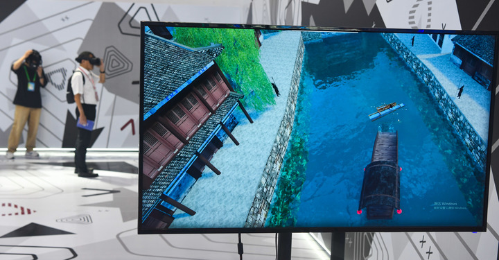 9月21日,觀眾在第十四屆中國(guó)國(guó)際數(shù)字出版博覽會(huì)上體驗(yàn)大運(yùn)河VR沉浸式研學(xué)空間。 新華社記者 楊冠宇 攝