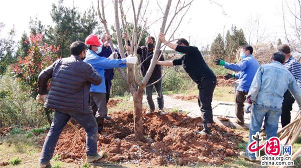 合力扶苗、揮鍬填土、踩實(shí)壓緊、提桶澆水……3月10日,在湖南省武岡市荷塘村義務(wù)植樹基地,黨員群眾分工協(xié)作、相互配合,每個環(huán)節(jié)都一絲不茍。經(jīng)過一上午的忙碌, 一棵棵櫻花樹迎風(fēng)挺立,把山頭裝點(diǎn)得綠意盎然。今年,武岡繼續(xù)啟動55個美麗鄉(xiāng)村綠化美化建設(shè),繼續(xù)改善城鄉(xiāng)環(huán)境,提高人民群眾的獲得感和幸福感,為爭創(chuàng)省級森林城市“添磚加瓦”。