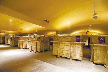 穿過厚重的大門,來到金徽酒廠的養(yǎng)酒館,這里面藏了不少“寶貝”,這其中當屬酒海最具亮點。何為酒海?酒海,古時為儲酒的器具,相當于現(xiàn)在的酒庫。它是在白酒釀造過程中用古槐木打造的儲酒容器,酒在酒海中密閉貯藏,能夠提升酒體的老熟速度和質(zhì)量,去除酒中雜質(zhì),賦予酒特有香氣。明代以前,由于規(guī)模小,徽縣的釀酒作坊一直用壇、罐、籠等儲存。“萬盛魁”老作坊,其先祖從唐宋就開始試制非金屬、非陶制品的儲酒器具,先試制酒籠,進而試制酒海用于儲酒。