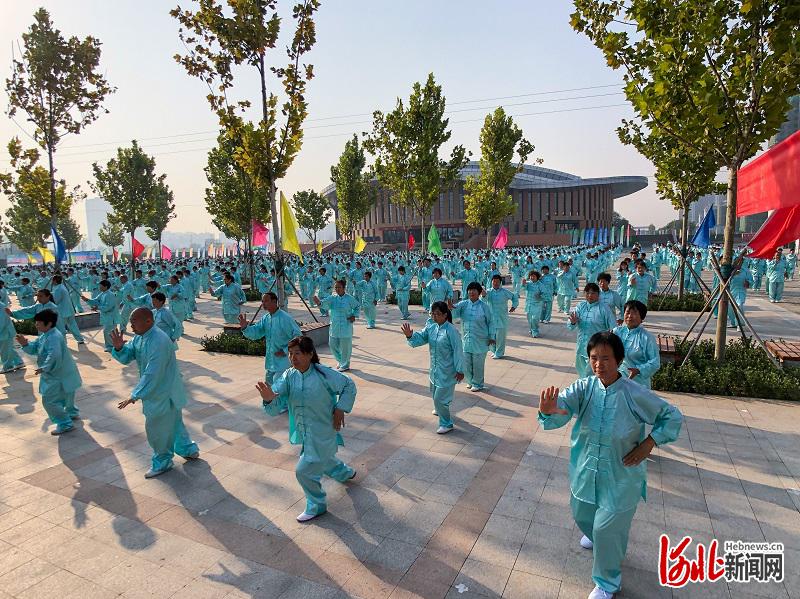 9月20日,邢臺市第四屆旅發(fā)大會進(jìn)行觀摩參觀活動。圖為體育公園廣場上的太極拳表演 杜船攝