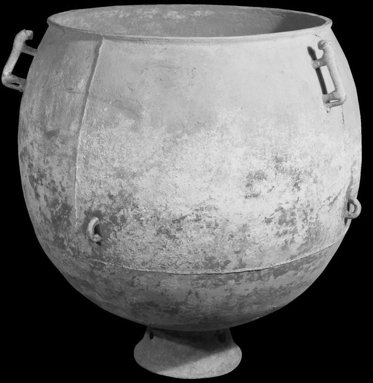 這件青銅鍑的鑄造帶著游牧民族的特點(diǎn),先分后合, 分塊鑄造然后焊接而成。這是一件罕見(jiàn)的秦末漢初匈奴鑄造的大型青銅鍑,其時(shí)間大概在戰(zhàn)國(guó)到漢初。