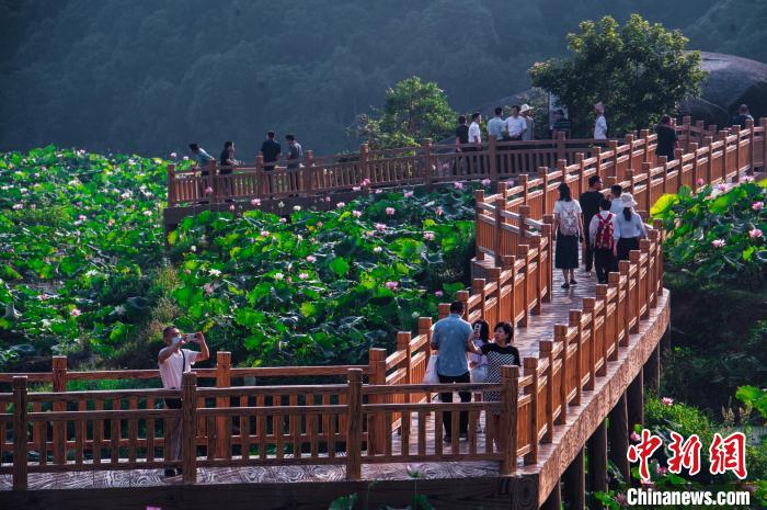 原標(biāo)題:福建建寧荷花怒放 吸引游客“為荷而來”