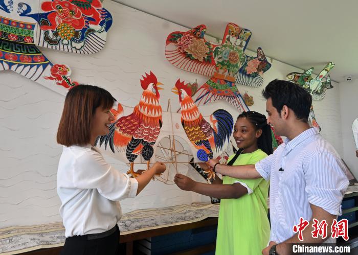 中新網(wǎng)廊坊7月21日電 (李玉素 宋敏濤)21日,來自河北師范大學(xué)的尼日利亞籍留學(xué)生馬臻和巴基斯坦籍留學(xué)生烏瑪爾,來到河北省廊坊市安次區(qū)第什里風(fēng)箏小鎮(zhèn),體驗(yàn)中國傳統(tǒng)的風(fēng)箏文化。