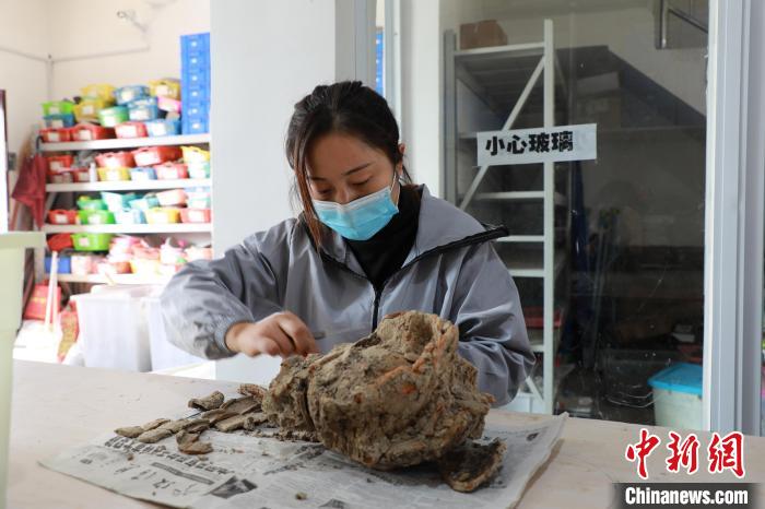 圖為工作人員在修復(fù)文物。代盼盼 攝