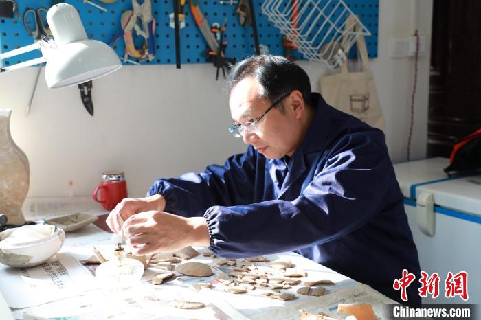 在工作站內(nèi),信陽市平橋區(qū)城陽城址管委會副主任劉勇也是修復(fù)組成員之一,今年也是他在城陽城工作的第18個年頭。