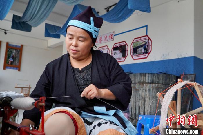 圖為一名白褲瑤居民正在紡織。韋國政 攝