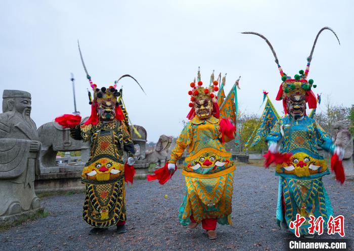 郎溪縣國(guó)家級(jí)非遺跳舞猖在郎溪縣濤城鎮(zhèn)慶豐村大佛山養(yǎng)心谷展演?!±顣约t 攝