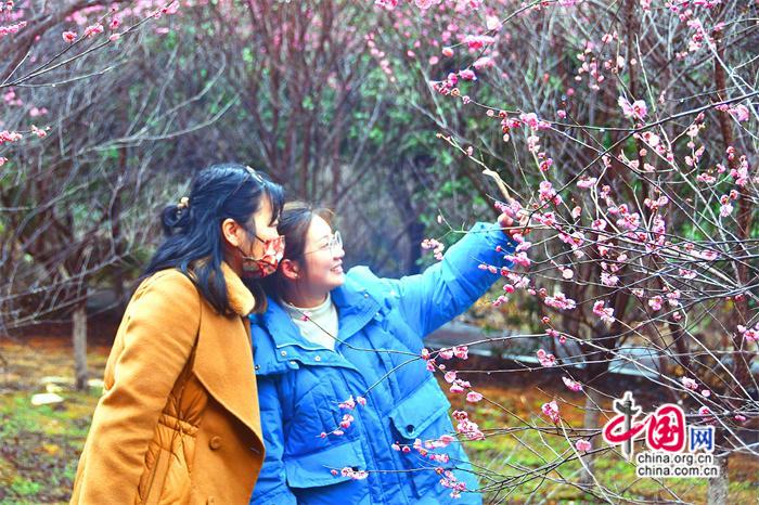盛開的梅花散發(fā)著幽香,沁人心脾,吸引不少游客市民紛至沓來弄花探春。(劉佑祥 邱文麗 張海兵)