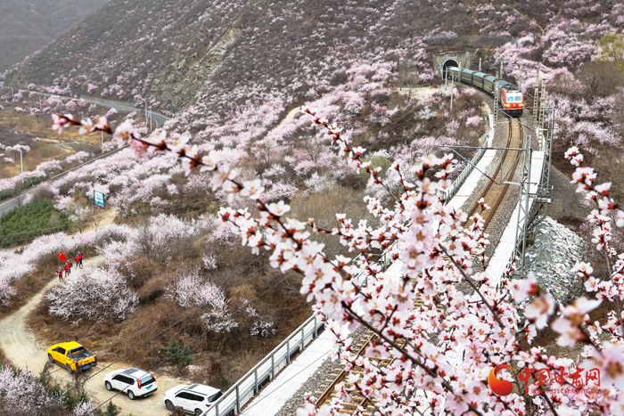 陽(yáng)春三月,桃之夭夭。在崇信縣的漫山遍野上,朵朵桃花迎來(lái)盛放期。微風(fēng)吹來(lái),暗香浮動(dòng)。近看,朵朵嬌俏的桃花層層疊疊,錯(cuò)落有致。遠(yuǎn)看,漫山紅遍如霞似錦,爛漫壯觀。特別是一列列火車穿行而過(guò),與桃花撞了個(gè)滿懷,奔向充滿希望的春天。