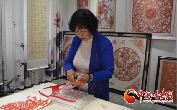 中國甘肅網5月18日訊 (本網記者 田洋 通訊員 丁海琴)5月17日,在瓜州縣文化館內一片“沙沙”的裁剪聲中,一張張紅紙,折折剪剪、從內往外、從簡到繁,普通的紅紙有了圖案,寫意與寓意步步呈現。