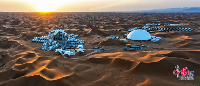 沙坡頭旅游區(qū)依托良好的生態(tài)資源,打造了國內(nèi)首個以沙漠觀星為主題打造的酒店——星星酒店,在蒼茫遼闊的沙漠之中,這座造型獨特的酒店仿佛星星一般,閃爍其中。