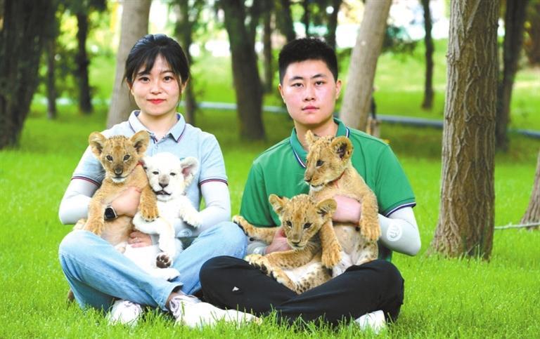 “小黃”“小花”“小算盤”“小白”是四只非洲獅,它們活潑健壯,愛跑愛跳,看上去奶兇奶兇的。