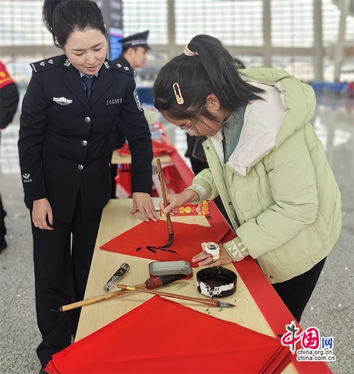 本次活動由莆田車站派出所牽頭組織,聯(lián)合中信銀行、莆田站共同開展?;顒悠陂g,民警與志愿者在莆田站甬廣場候車室為旅客發(fā)放高鐵安全宣傳單及春聯(lián),并由青年民警現(xiàn)場書寫春聯(lián)、福字送給來往旅客,將平安、溫馨傳遞給每一個(gè)人。