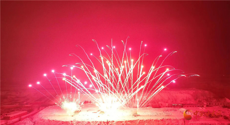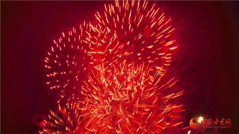 以焰火為筆,以星空作畫。晚8時許,焰火在夜幕中徐徐點(diǎn)亮,一朵朵、一束束焰火騰空而起,直沖云霄、綻放出耀眼的光芒。洶涌澎湃的銀河瀑布如金似玉從天庭倒掛,飛流而下,層層疊疊。依次從地面升起的各種禮花,如明珠,似繁星在空中閃爍,綻放出一幅幅絢麗壯觀、色彩繽紛的美麗畫卷。璀璨絢爛的煙花與小城的夜景、群眾的歡聲笑語、相機(jī)的快門聲交相輝映,大家都沉浸于濃濃“年味”和新春喜悅中。