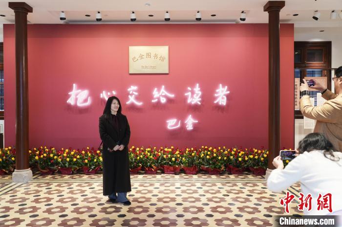 11月25日,巴金先生誕辰120周年,巴金圖書(shū)館在上海揭幕,實(shí)現(xiàn)了巴老生前想要?jiǎng)?chuàng)辦一座圖書(shū)館的心愿。圖為觀眾在巴金圖書(shū)館留影。中新社記者 張亨偉 攝